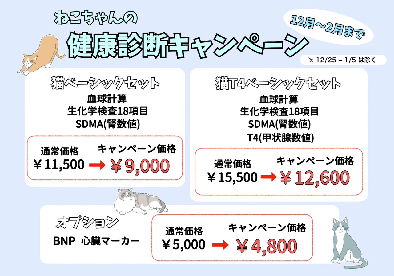 今年も猫ちゃんの血液検査を”キャンペーン特別価格”で受けていただける健康診断キャンペーンを実施いたします。